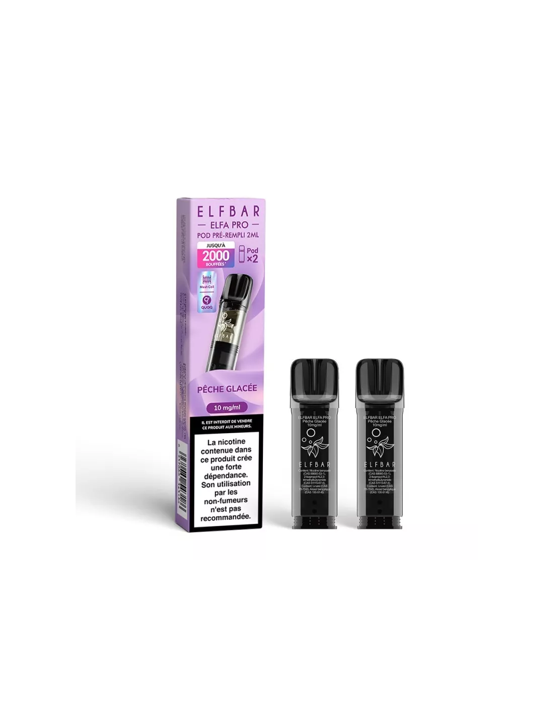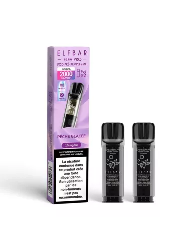 Cartouches Elfa Pro 2ml Pêche Glacée par 2 pour pod Elfbar. Saveur fruitée et rafraîchissante, compatibles avec le système Elfa Pro. Recharge pratique et rapide.
