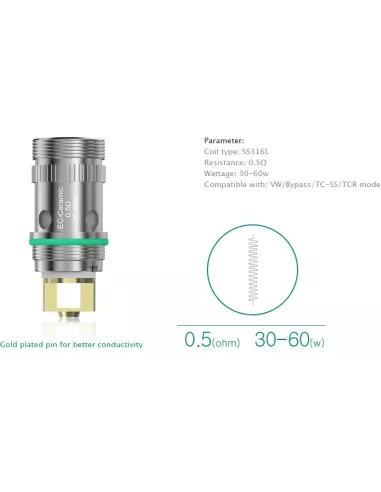 Cette résistance EC-N est spécialement conçue pour s'adapter aux clearomiseurs Melo d'Eleaf, notamment les versions Melo 4, Melo 5 et autres modèles compatibles de la série. Elle s'installe facilement grâce à son système de montage simplifié, permettant un remplacement rapide sans outil.